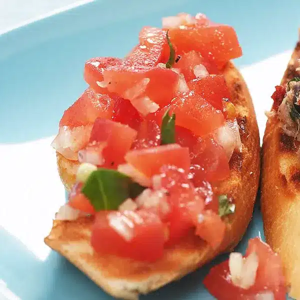 Puikus crostini receptas su pomidorais. Pagardinta balzamiko actu ir alyvuogių aliejumi – tiesiog skanu. Idealiai tinka kaip užkandis ar vakarėliui su draugais.