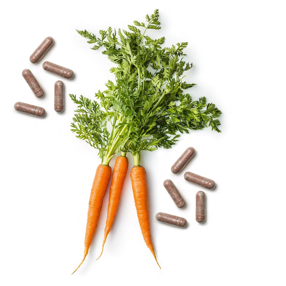 Beta karotenas yra vitamino A pirmtakas, kuris padeda palaikyti normalią odos tekstūrą. Organizmas iš provitamino A paverčia apie 50 skirtingų karotinoidų į vitaminą A. Vitaminas A palaiko geležies apykaitą, normalią gleivinių, odos ir regėjimo būklę, stiprina imuninę sistemą ir dalyvauja ląstelių specializacijos procese.