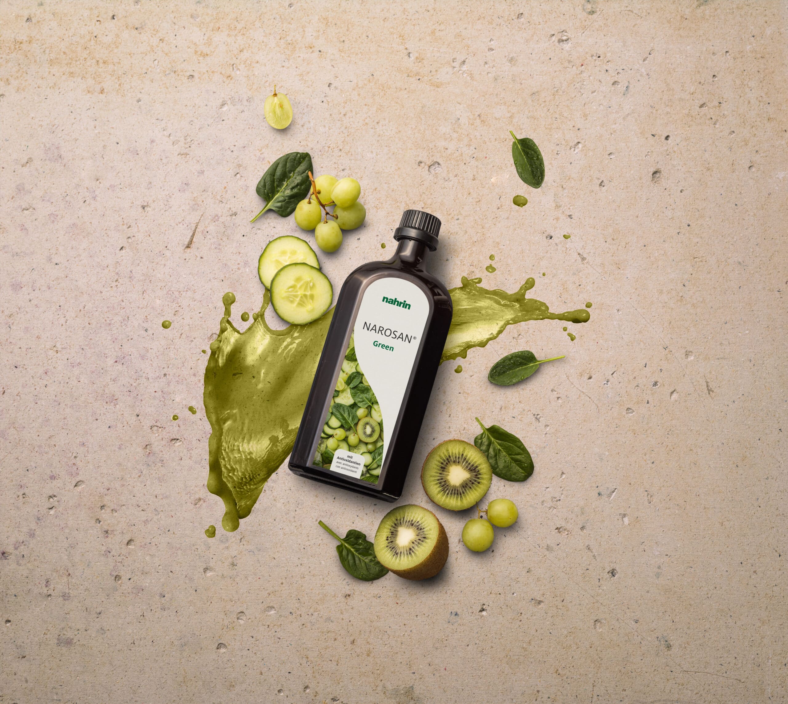 Nahrin sukūrė Narosan® Žalias– veiksmingą maisto papildą, kurio pagrindą sudaro daržovių ir vaisių sultys, 10 vitaminų ir vynuogių sėklų ekstraktas, palaikantis ląstelių apsaugą.