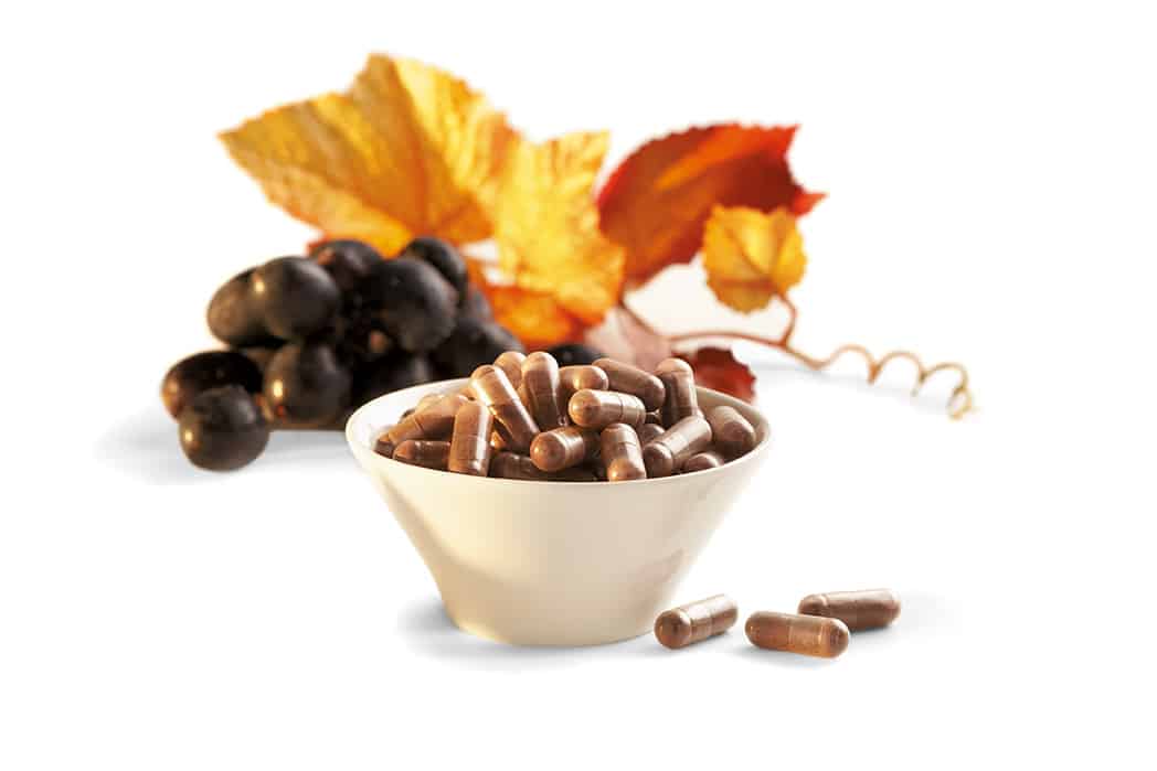 hidroksipropilmetilceliuliozė (kapsulės apvalkalo glazūravimo medžiaga), vynuogių žievelės ekstraktas (Vitis vinifera L., vaisiai), kofermentas Q10 (ubidekarenonas), raudonojo vyno milteliai (gliukozės sirupas, raudonojo vyno milteliai (su sulfitais), vynuogių lapų milteliai (Vitis vinifera, lapai), kukurūzų krakmolas, vynuogių sėklų ekstraktas (Vitis vinifera, sėklos), vitaminas E (D-alfa-tokoferilo acetatas).