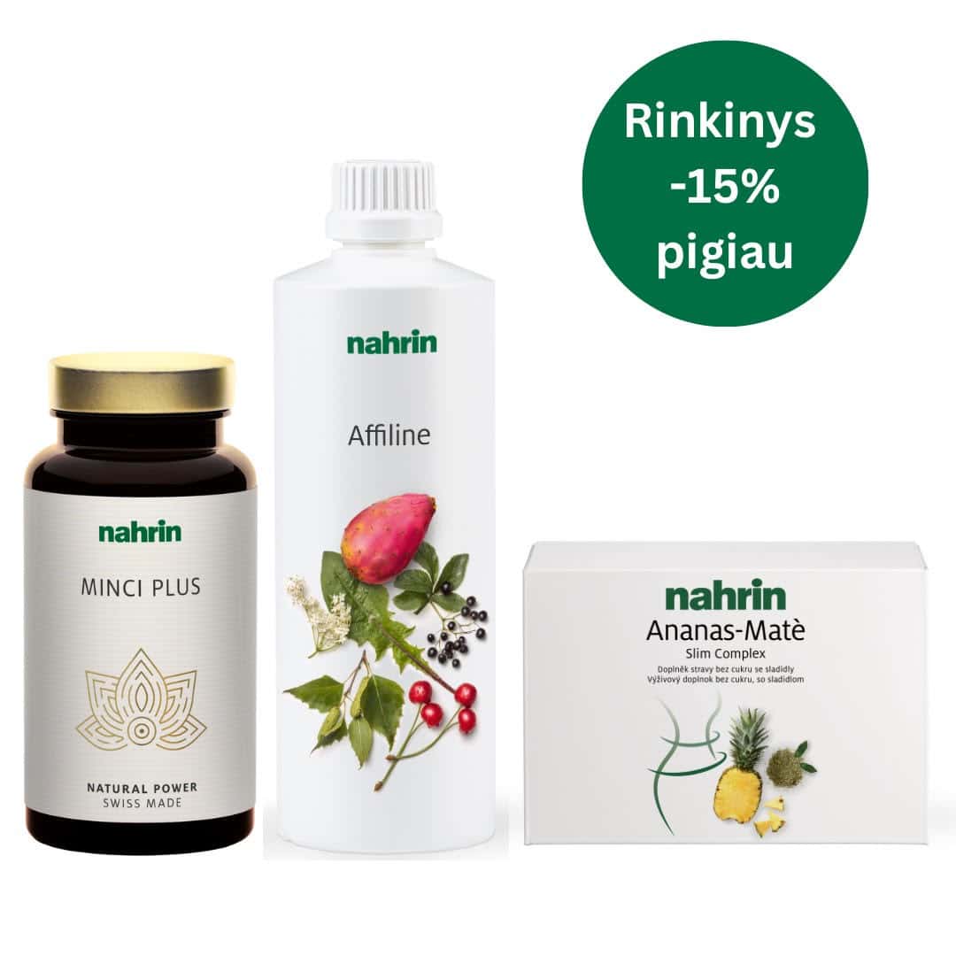 Rinkinys lieknėjimui: Minci Plus su kaktusų skaidulomis ir chromu, ananasų-matė arbatos kompleksas ir Affiline gėrimas
