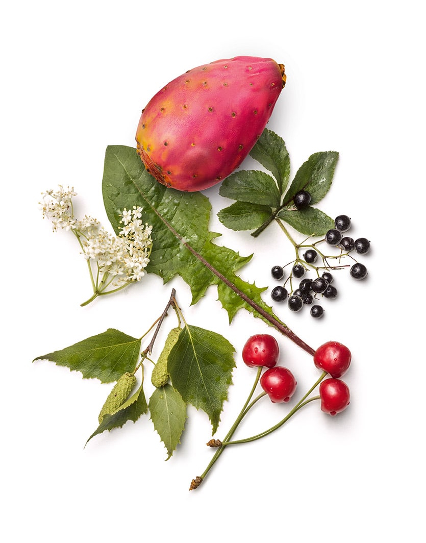 Vanduo, vyšnių sultys iš koncentrato 14% (Prunus cerasus, vaisiai), šeivamedžio sultys iš koncentrato 12,8% (Sambucus nigra, vaisiai), inulinas, kaktusų ekstraktas (Opuntia ficusindica, vaisiai), maltodekstrinas, augalų ekstraktai: kiaulpienės (Taraxacum officinale Wigg, antžeminė dalis ir šaknis), beržo lapai (Betula pendula, lapai), artišokas (Cynara scolymus, lapai), dilgėlės (Urtica dioica, lapai), pelkinės vingiorykštės ekstraktas (Filipendula ulmaria, antžeminė dalis), citrinų sulčių koncentratas, tirštikliai (arabiška guma, ksantano derva), konservantas: kalio sorbatas, saldiklis: sukralozė.